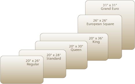 Regular, Standard, Queen Pillows: these sizes are the most appropriate for sleeping pillows as the fill is held properly in place. For the best appearance, we suggest a standard or queen pillow on a twin bed, and a pair of standard or queen pillows on a full or queen bed, and use three regular or standard size pillows across a king bed. The down pillows you sleep on should be where most of your pillow budget goes to, so therefore get the best you can afford.