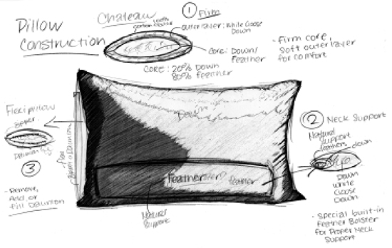 Down & Feather Pillows: these have less compression, and are more appropriate for those who prefer a firmer pillow with less 'puffiness'. They are also recommended for Euro squares (the types of pillows you would lean against). They are also very good for those that like two pillows, so use as the second pillow. St. Geneve makes the Chateau pillow specifically for these conditions. With care, these pillows will last for years. These pillows must be professionally cleaned, therefore the use of a pillow protector is required.
