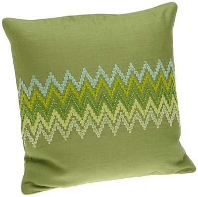 This apple green linen zig zag embroidered pillow is sure to add a punch of color.