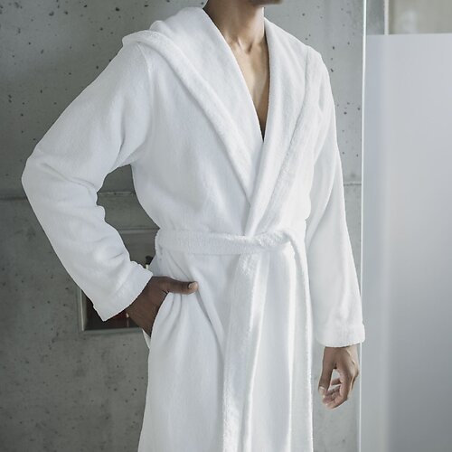 Designed with a modern hooded silhouette, this robe is as practical as it is polished. The absorbent cotton effortlessly wicks away moisture, making it your go-to after a steamy bath or quick shower. The texture is soft yet structured, giving you that just-right robe feel-never too heavy, never too light. It's thoughtfully crafted to elevate your every day, whether you're slipping it on post-bath or wearing it while you sip your morning coffee.