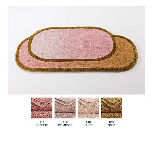Soft curves. Blush tones. A subtle shimmer. The Boudoir Bath Rug is elegance woven into every fiber. Designed in a romantic dual oval shape, this plush bath rug features delicate hues-Rosette Pink, Primrose Pink, Nude, and Gold-that whisper luxury. Touches of metallic sparkle from Lurex threads catch the light, turning your bath space into a peaceful, pampering retreat. It's the perfect match for anyone drawn to soft palettes and timeless femininity. Special order, usually ships in 4-6 weeks.