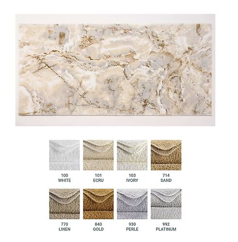 Rooted in the beauty of natural stone, the Castello Bath Rug delivers a grounded sense of luxury. With soft, earth-toned shades like Ivory, Sand, Linen, and Platinum Grey, and delicate metallic Lurex accents, this rug brings warmth and sophistication to any bathroom. The subtle stone-look pattern echoes spa-inspired serenity-an effortless way to elevate your space without overpowering it. Special order, usually ships in 4-6 weeks.