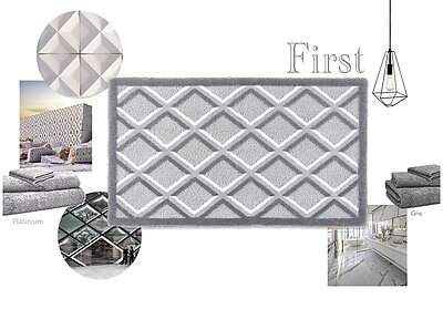First features a dimensional diamond design in grey's and silver. Elegant and stylish, First rug will coordinate with a variety of styles and add interest to your decor.