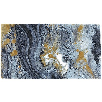The Midnight rug by Abyss Habidecor is stunning. Primarily in shades of blue and gold, the pattern reminds us of a beautiful cut agate stone slab, or some fanciful planetary scape. The gold Lurex adds just the right amount of sparkle.