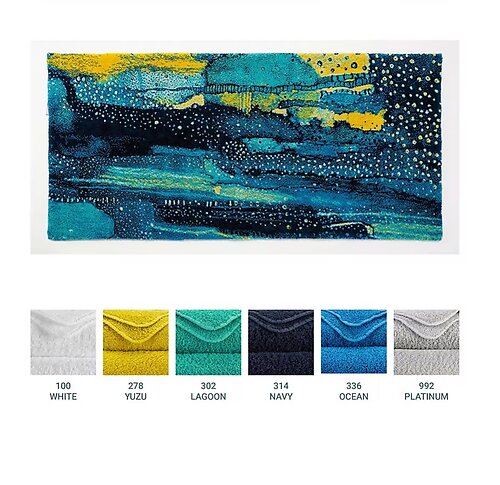 Transform your bathroom into a canvas of calm with the Abyss Habidecor Nereo Bath Rug. Featuring an elegant abstract painting pattern in a palette of White, Yuzu Yellow, Lagoon Green, Ocean Blue, Navy, and Platinum Grey, this rug captures the fluidity of brushstrokes and the serenity of the sea. Whether your aesthetic leans coastal, modern, or eclectic, the Nereo makes an artistic statement that feels personal, peaceful, and oh-so-inviting. Special order, usually ships in 4-6 weeks.