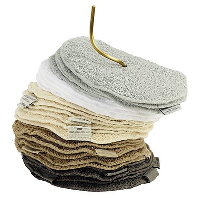 The Legend guest towel dispenser contains a coordinating group of round guest towels and simple holder / dispenser unit.