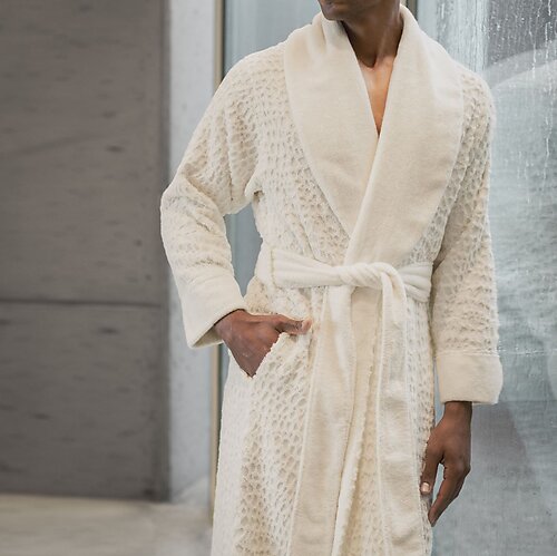 Slip into serenity with the Abyss Habidecor Lodge Robe, where minimalism meets pure indulgence. Crafted from 100% Giza Egyptian cotton extra-long staple, this robe exudes quiet luxury with its textured monochromatic design and elegant shawl collar. The refined detailing and graceful drape wrap you in a feeling of calm sophistication-perfect for those who appreciate timeless style and thoughtful comfort. Special order, usually ships in 4-6 weeks.