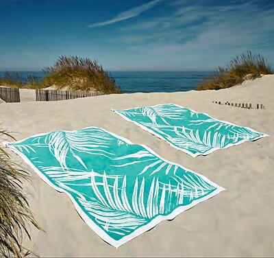 The Abyss Oasis Beach Towel measures 45 x 78" and features a design inspired by the palm trees of a tropical paradies. Made of luxurious 100% extra long staple Giza Egyptian Cotton. Light weight 450 g/m2