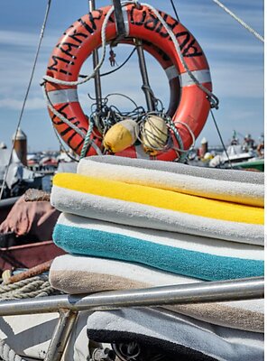 The Abyss Prado Beach Towel measures 39 x 78" and features a classic striped design. Made of luxurious 100% extra long staple Giza Egyptian Cotton. Light weight 400 g/m2 Made to order in Portugal, usually ships in 4-6 weeks.