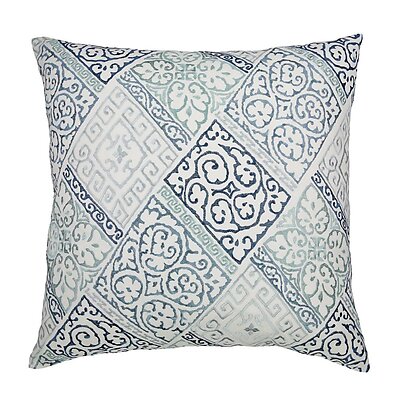 This elegant bedding collection features embroidered blues on a creamy white background.