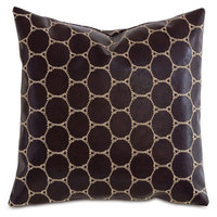2x Brown patterned accent pillows with feather/down fillers, 22 x 22"