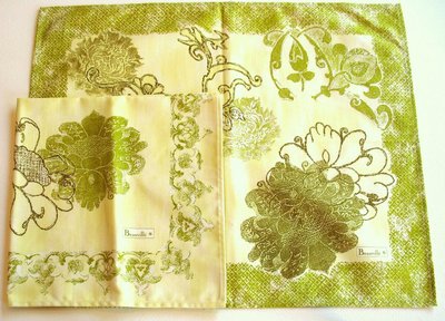 These beautiful green color napkins and placemats feature a stunning floral pattern and are made in France by Beauville.