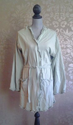 Bella Notte French Terry Celadon Green Ruffled Cotton Robe