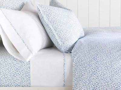 Blue & White Leopard Duvet Cover & Sheets - Barclay Butera Tanner Indigo