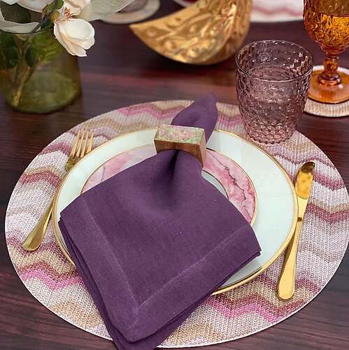 Bodrum Bargello Mauve Round Easy Care Placemats - Set of 4. This product has been discontinued, please see Bodrum Placemats for current selections.