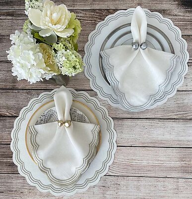 These scalloped napkins with gradient embroidery, bring an updated Belle Epoque feel to your table. Belgravia collection also has matching mats and napkin rings to complete the look.