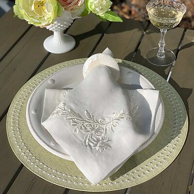 This 100% Linen off-white napkin is beautifully embroidered with a delicate floral pattern. With a distinctly heirloom yet contemporary feel, Bella napkins will certainly add charm to your tables.