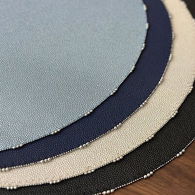 These 16" round placemats are made of 100% Phthalate free vinyl for easy care, just wipe with a damp cloth. Immerse yourself in the allure of handcrafted beaded edges with the Charm mats. Each placemat is adorned with a symphony of beads in varying sizes, creating a captivating visual feast for the senses with a with a soft lightly textured surface. Made in Turkey. Click link to view other Bodrum Placemats