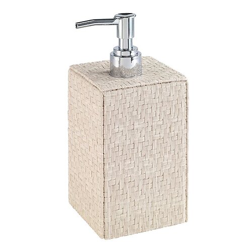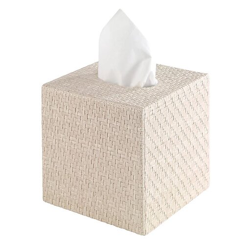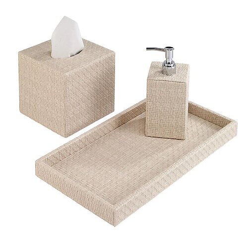 Transform your bathroom into a haven of rustic elegance with the Bodrum Cream Wicker Bath Collection. This collection captures the intricate, handwoven artistry look typical of traditional wicker products, brought to life in a series of bath accessories that blend both function and style. Made of 100% Phthalate-free Vinyl. Featuring items such as a tissue box, vanity tray, soap dispenser, and waste basket, each piece is designed to elevate your bathroom's decor while providing practical utility. Special order, usually ships in 1-2 weeks. Bodrum bath collections
