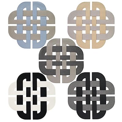 These 16" placemats are made of 100% Phthalate free vinyl for easy care, just wipe with a damp cloth. Galway easy care mats are the latest version, taking fabrics from Bodrum's Skate collection and combining it into a 16" round knot shape in 4 different color combinations. These placemats are completely vinyl, giving you both a high design and ease of care. They are perfect for all your indoor and outdoor soirees any season. Made in Turkey.