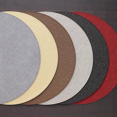 These 15" round placemats are made of 100% Phthalate free vinyl for easy care, just wipe with a damp cloth. The material is flexible and features a lightly textured surface reminiscent of woven fabric, infused with a touch of sparkle. Made in Turkey. Click link to view other Bodrum Placemats