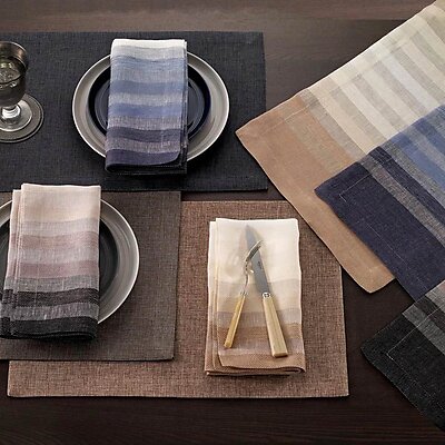 Contemporary and chic, Bodrum's Gradient Stripe collection capitalizes on the current color trends while layering on a touch of masculine influence. Napkins are available in 3 color combinations.