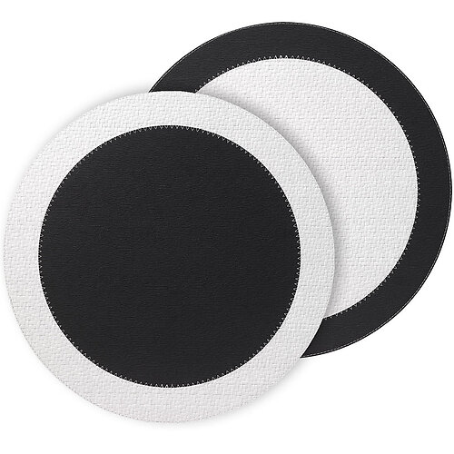 Transform your dining experience with these elegantly designed round placemats, featuring a sophisticated black and white color scheme that seamlessly matches any tableware. The reversible design allows you to switch between two striking looks, offering versatility and a fresh style with each use. Made in Turkey. Click link to view other Bodrum Placemats