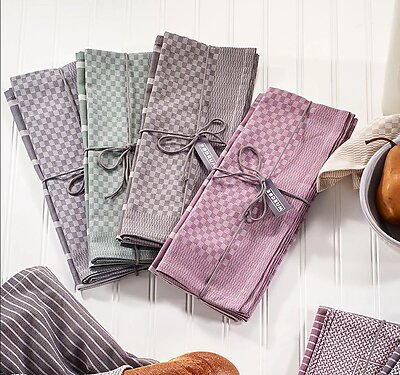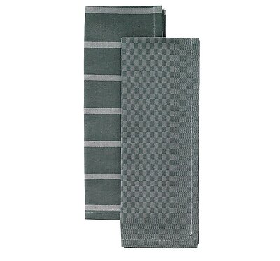 These forest green dish towel sets combine the pattern from our Lido napkins and the stripes from our Café napkin sets. You get 1 of each style. Soft cotton jacquard woven fabric.