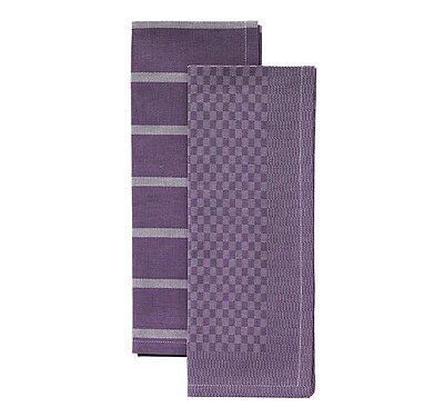 These purple dish towel sets combine the pattern from our Lido napkins and the stripes from our Café napkin sets. You get 1 of each style. Soft cotton jacquard woven fabric.