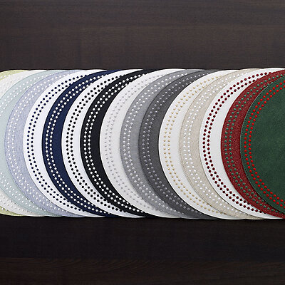 These 15" round placemats are made of 100% Phthalate free vinyl for easy care, just wipe with a damp cloth. The material is flexible and features a lightly textured surface reminiscent of woven fabric, with the addition of embroidered border. Made in Turkey. Click link to view other Bodrum Placemats
