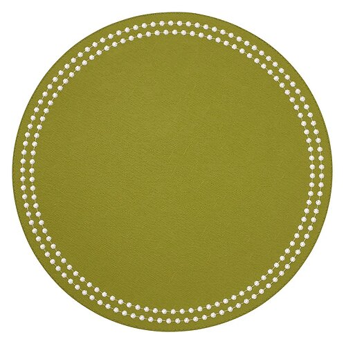 Grace your table with the Bodrum Pearls Grass Green and White Placemats, designed to offer a touch of refined elegance with practical features. These 15" round placemats are beautifully adorned with pearl-like embroidered dots along the edges, creating a delicate border that complements any table setting. The warm tones of green mixed with crisp white bring a serene and sophisticated palette that enhances the ambiance of your dining space. Special order, usually ships in 1-2 weeks. Made in Turkey. Click link to view other Bodrum Placemats