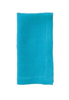 Bodrum Riviera Turquoise Blue Stonewashed Linen Napkins - Set of 4