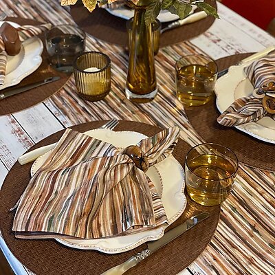 With its earthtone hues of chocolate, rust and forest, the Sierra collection is the quintessential Autumn collection. It's sure to be a topic of conversation in any gathering! Set of 4 Napkins