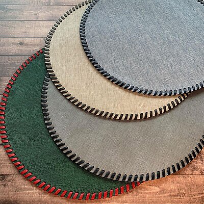 These 15" round placemats are made of 100% Phthalate free vinyl for easy care, just wipe with a damp cloth. Our Whipstitch Easy Care Mats take some of our already amazing fabrics and layer on a "stitch" of fashion. These mats have leather stitch around the edge for a great new look. These placemats are completely vinyl, giving you both a high design and ease of care. They are perfect for all your indoor and outdoor soirees any season. Made in Turkey. Click link to view other Bodrum Placemats