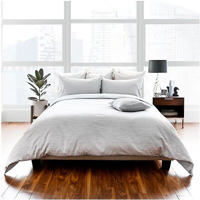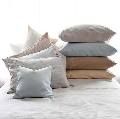 A luxuriously soft cotton jacquard, Vista features subdued melange striations, bringing an air of calm and sophistication to this bed linen. Knife-edge finishing and a bold 3" solid color border on the Regular, Standard, Queen and King shams infuse this set with contemporary style.