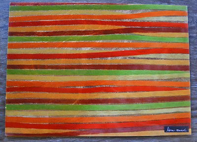 A durable and functional handmade work of art. Colored fibers are hand blended and layered to form the design which is then encased between layers of vinyl making these placemats easy care, just wipe clean with a non-abrasive cloth and gentle soap. Colors of Green, Rusty Red, Golden Yellows, Crimson Red and Orange with beautiful copper strands throughout give wonderful coloration to the flexible placemat. Please note that each piece is unique and some variations in patterns and colors will occur.