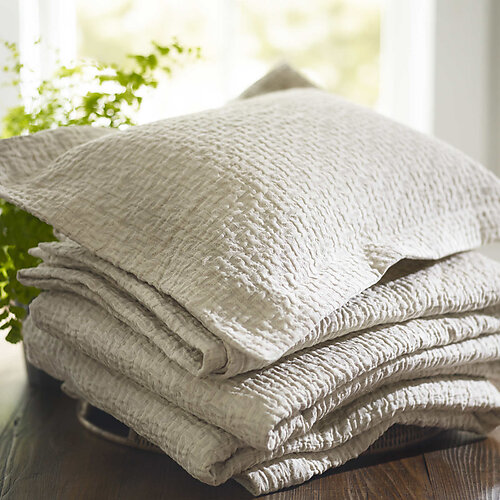 Crafted with all-natural fibers and free from dyes or harsh chemicals, The Purists Eton is certified Oeko-Tex and consciously designed for clean living. The machine washable fabric ensures easy maintenance while preserving the refined beauty of the linen-cotton blend. Duvet covers, shams, and decorative pillows feature elegant tie closures-adding a touch of relaxed refinement. Lightweight yet substantial, Eton is made to transition beautifully through all seasons, wrapping you in breathable warmth and crisp coolness night after night.