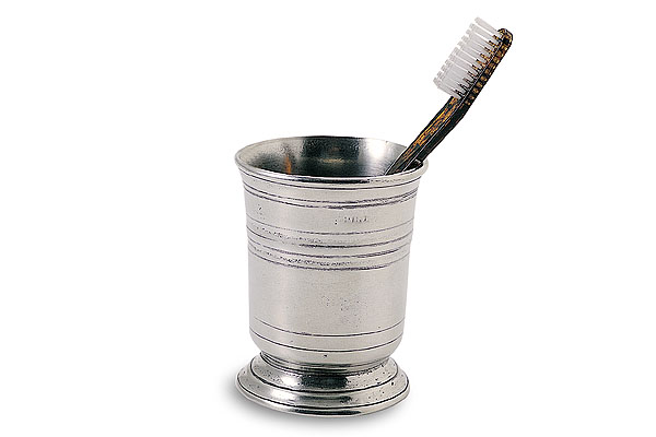 Italian Pewter Toothbrush Cup by Match Pewter Match Pewter is handmade by artisans in the north of Italy. Each piece is made with a lead free alloy of tin, copper and antimony. Match Pewter is FDA approved and food safe. Item 861.1 4.7" tall