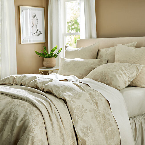 Elevate your bedroom with the SDH The Purists Josephine Collection, where timeless floral jacquard meets the purity of nature. Woven from a luxurious blend of 55% linen and 45% Egyptian cotton, this fabric is undyed, allowing the natural beauty of the fibers to shine through. The delicate floral motif is quietly elegant-never overpowering-making it the perfect foundation for any design style, from minimalist to classic romantic. While available as sheets and pillowcases, please be aware that this fabric does have a light texture. Check out the Purists Julia or Linen Plus for smoother options.