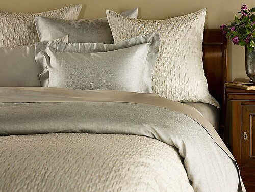 SDH Kara is an Asian themed bedding that has a geometric design and a Asian flair. SDH Kara is offered in the rich colors of Golden Aqua and Pearl gray. Beautiful Italian woven Egyptian cotton jacquard bedding.