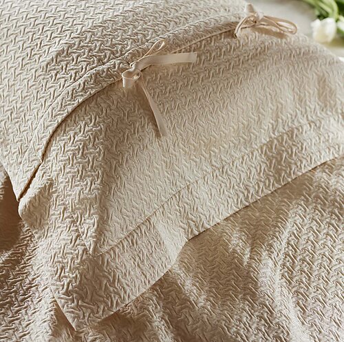 The hallmark of Kimi Silk is its jacquard boutis weave, delivering soft texture and subtle depth that turns your bed into a visual and tactile masterpiece. The elegant blend of silk, cotton, and wool offers just the right amount of warmth and sheen, perfect for layering throughout the year. Every detail is considered, from the artisanal fabric tie closures to the tailored silhouette of each sham and pillow. Whether draped across your bed or styled as a statement accent, this collection brings enduring beauty to your bedroom.