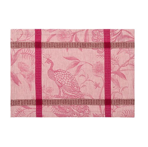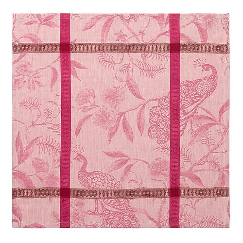 Step into the enchanting world of a French-style garden, where delicate flowers, intertwining branches, and regal peacocks create a scene of pure sophistication. The Le Jacquard Français À l'Orangerie Pink Table Linens capture this timeless beauty in a breathtaking jacquard weave. The soft, blush pink hues radiate warmth and charm, making every meal feel like a luxurious celebration. Whether hosting a grand dinner party or enjoying an intimate brunch, these linens transform your table into a masterpiece of elegance. Special order, usually ships in 3-4 weeks.