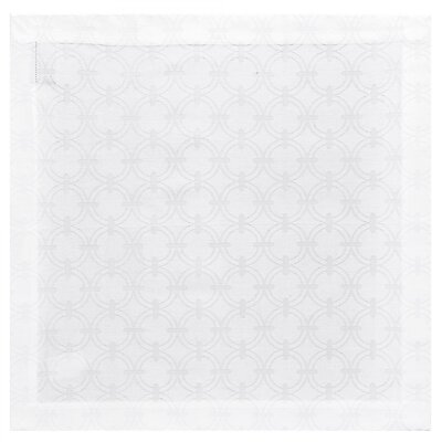 This beautifully patterned white table linen collection features an interconnected ring pattern design woven in traditional white.