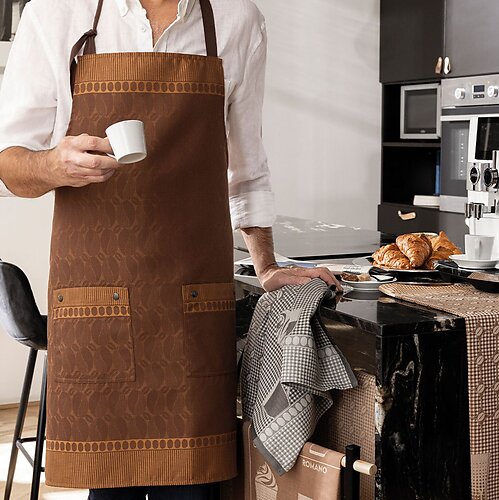 Let your culinary space echo the rich aroma of roasted beans with the Le Jacquard Francais Barista Brown Kitchen Apron. Crafted in a deep coffee tone and adorned with a tasteful coffee bean pattern, this apron transforms everyday cooking into a stylish ritual. Whether you're steeping a slow-drip or mastering a mocha, this dark brown apron wraps you in the essence of café culture-warm, grounded, and effortlessly chic. Special order, usually ships in 3-4 weeks.