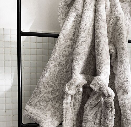 Crafted with longevity in mind, the Le Jacquard Français Charme Grey Bath Robe is built to last. The twisted cotton yarns, which are thicker than typical cotton fibers, create a fabric that stands up to repeated use without losing its softness. With each wash, the robe becomes even more comfortable, making it a lasting investment in both style and function.