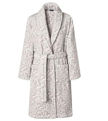 Wrap yourself in the luxurious embrace of the Le Jacquard Français Charme Grey Bath Robe, crafted from 100% cotton terry jacquard for an experience that is both indulgent and practical. Designed with your comfort in mind, this robe offers a plush texture that will instantly soothe your skin, providing gentle absorption after every shower or bath. With a 550 g/m² weight, it strikes the ideal balance between softness and lightness, making it perfect for all-year-round comfort. Made in Portugal. Special order, usually ships in 3-4 weeks.