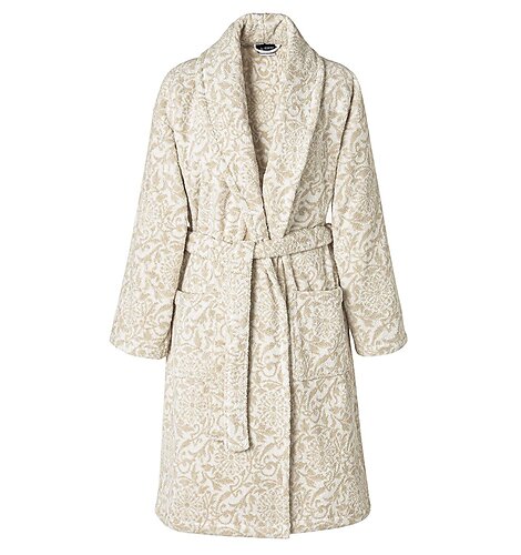 Crafted with premium cotton terry, this bathrobe excels in absorbency, making it the perfect companion after a shower or bath. The unique Jacquard terry weave enhances its absorbent properties, ensuring it swiftly dries your skin while remaining gentle and soft. With each use, the twisted cotton yarns keep the fabric plush and smooth, even after countless washes.