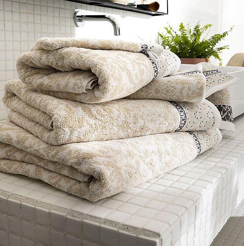 The Charme Yellow Bath Towels are part of a stunning collection designed to elevate every detail of your bathroom. With a range of sizes including bath towels, bath sheets, washcloths, hand towels, and guest towels, you can create the ideal trousseau tailored to your personal style and space. Complete your luxury bathroom setup with matching bath mats, wash mitts, and bathrobes from the same collection, all crafted with the same attention to detail and commitment to quality.