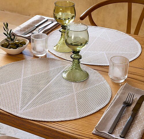 Crafted in France from a refined blend of 89% cotton and 11% linen, these premium Jacquard table linens offer both substance and style. The woven texture isn't just beautiful-it's a tactile experience that enhances the act of gathering. The natural fibers provide durability and breathability, while the precise Jacquard weaving technique ensures the geometric patterns are crisp, balanced, and subtly luxurious. It's a quiet celebration of design for those who appreciate the finer details.