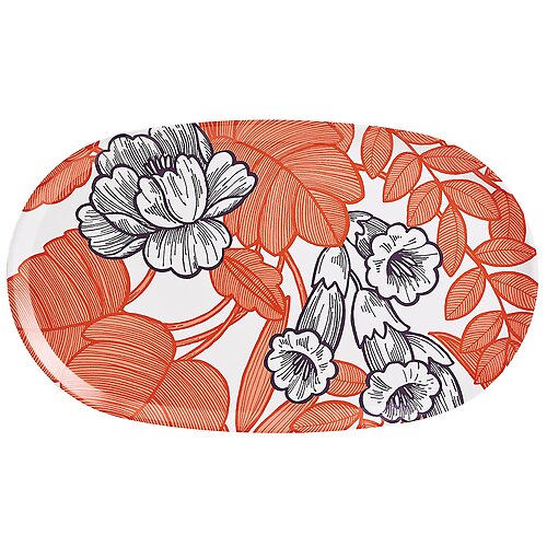 Make a statement with a tropical orange serving tray that's as striking as it is functional. Featuring vivid bursts of exotic leaves and flowers, this tray infuses your entertaining space with summer energy. Its generous oval shape holds everything from glasses and hors d'oeuvres to breakfast spreads and vibrant centerpieces. The bold colors and dynamic design spark conversation and bring instant joy to your decor.